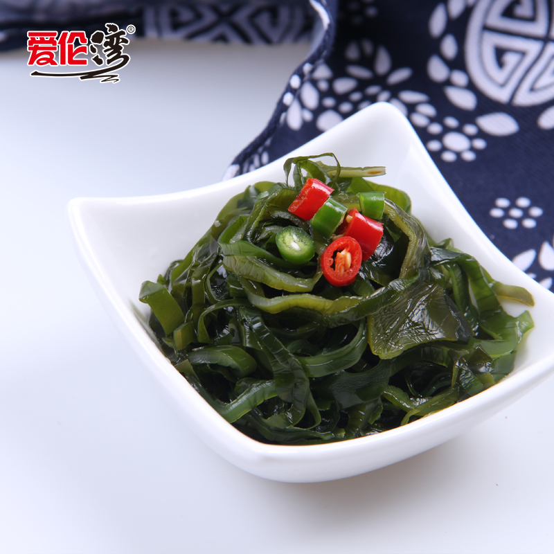 涼拌海帶精選4月脆嫩期的愛倫灣海帶葉片,橫切分選。本產(chǎn)品纖細(xì)均勻,脆嫩爽滑。宜制作蒜香海帶絲、酸辣海帶絲等涼拌類菜肴。