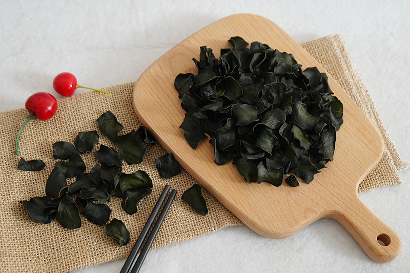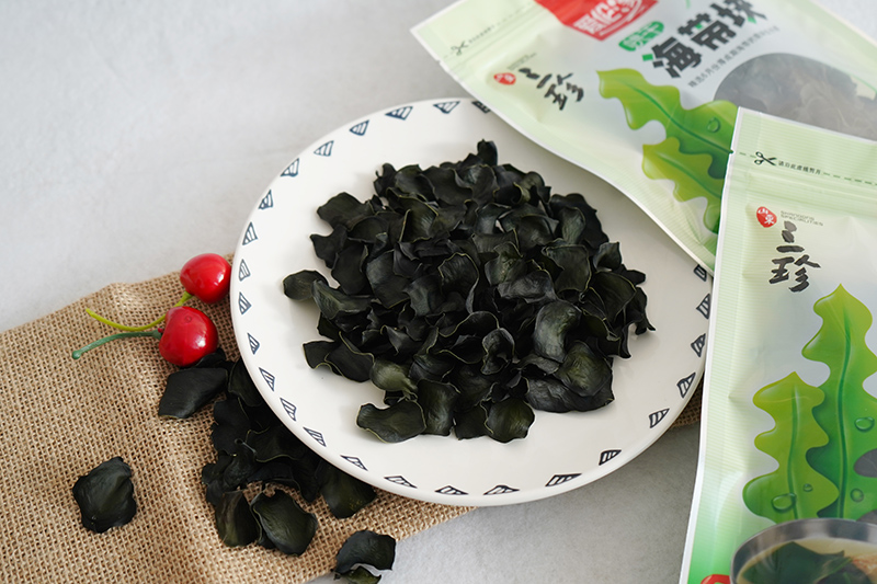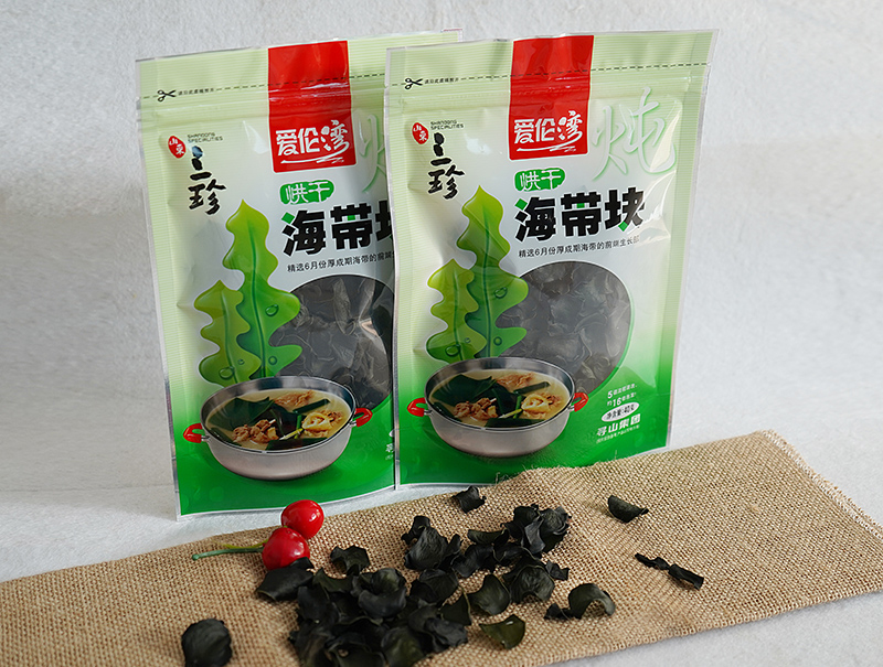 烘干海帶條精選6月厚成期愛(ài)倫灣海帶的前端生長(zhǎng)部,切塊分選,烘制而成。本產(chǎn)品泡發(fā)后肉厚質(zhì)韌,燉煮后口感軟糯。宜制作海帶燉肉、海帶燉排骨等燉煮類(lèi)菜肴,亦可涮鍋用。