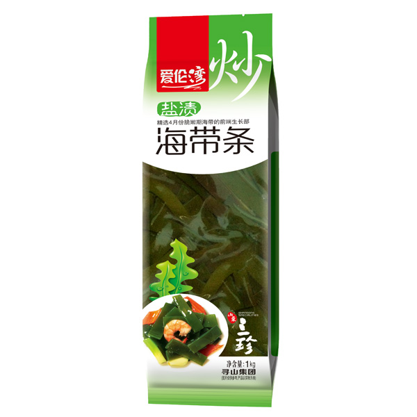 熗炒海帶精選4月脆嫩期愛(ài)倫灣海帶的前端生長(zhǎng)部,切條分選。本產(chǎn)品厚薄均勻,嫩軟爽口,熗炒易熟。宜制作清炒海帶、肉絲海帶等熗炒類(lèi)菜肴。